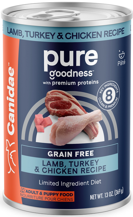 CANIDAE PURE Grain-Free Limited Ingredient Canned Dog Food Lamb, Turkey & Chicken 13-oz
