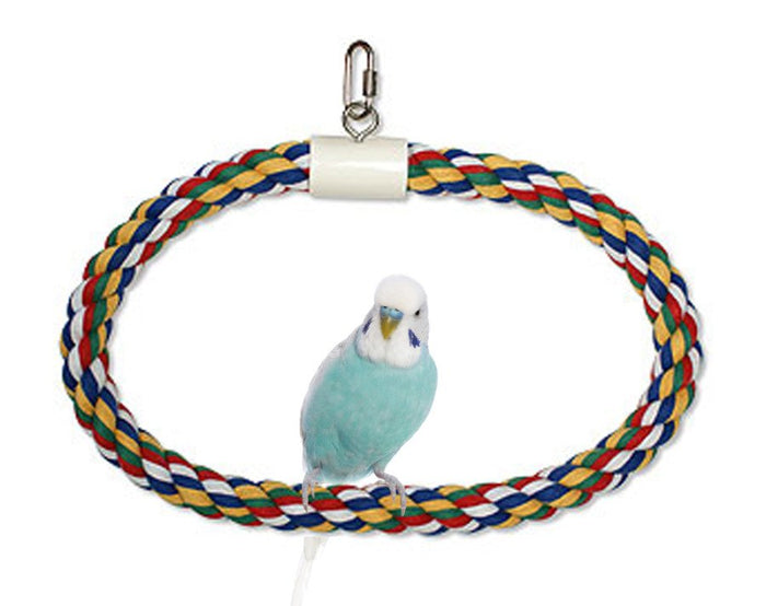 Fun play-time accessory for your bird's cage The comfy rope ring is a great place for your feathered friend to rest, or have a swingin' good time Provides a firm perch made from a woven cable of soft cotton