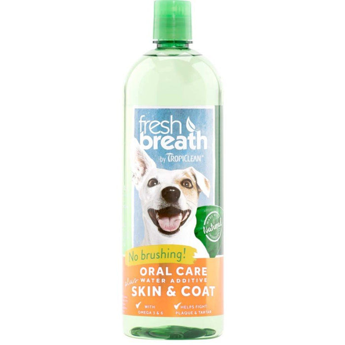 TropiClean Fresh Breath Oral Care Water Additive Plus Skin & Coat for Dogs 33.8-oz