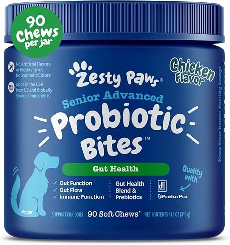 Zesty Paws Senior Advanced Probiotic Bites Soft Chews for Dogs Chicken 90 Count 11.1-oz