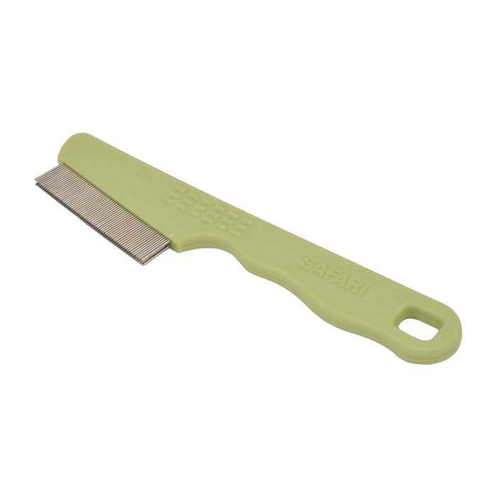 Use this flea comb to control fleas and identify skin and coat problems. Before using this tool, remove any tangles that could damage the teeth of this comb. Pay particular attention to areas around the ears, nape of neck and base of tail. Between strokes, dip the comb into a cup of water with mild detergent to kill the fleas left on the comb.