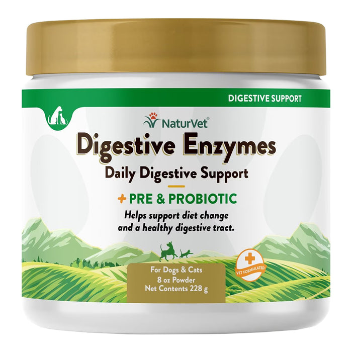 NaturVet Digestive Enzymes Plus Pre and Probiotic Powder for Dogs & Cats 8-oz